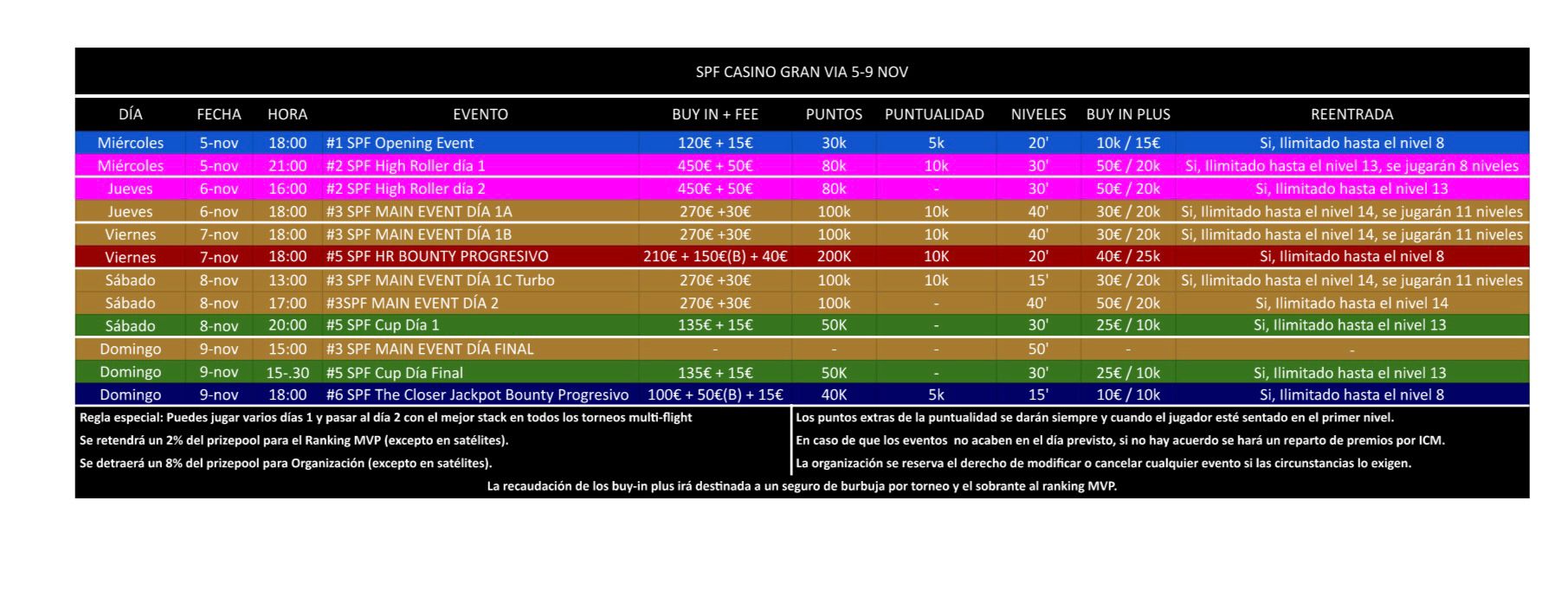 Calendario de poker completo