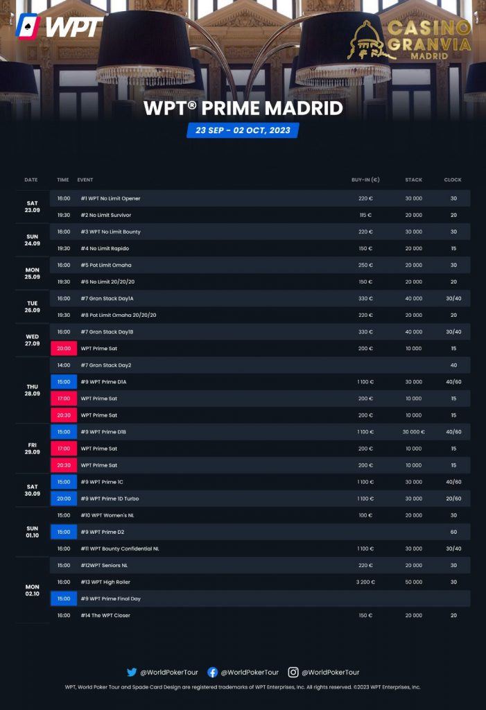 Calendario de poker completo